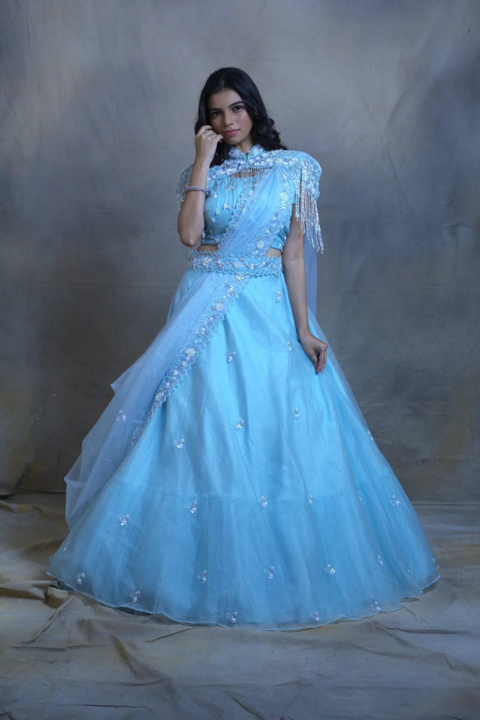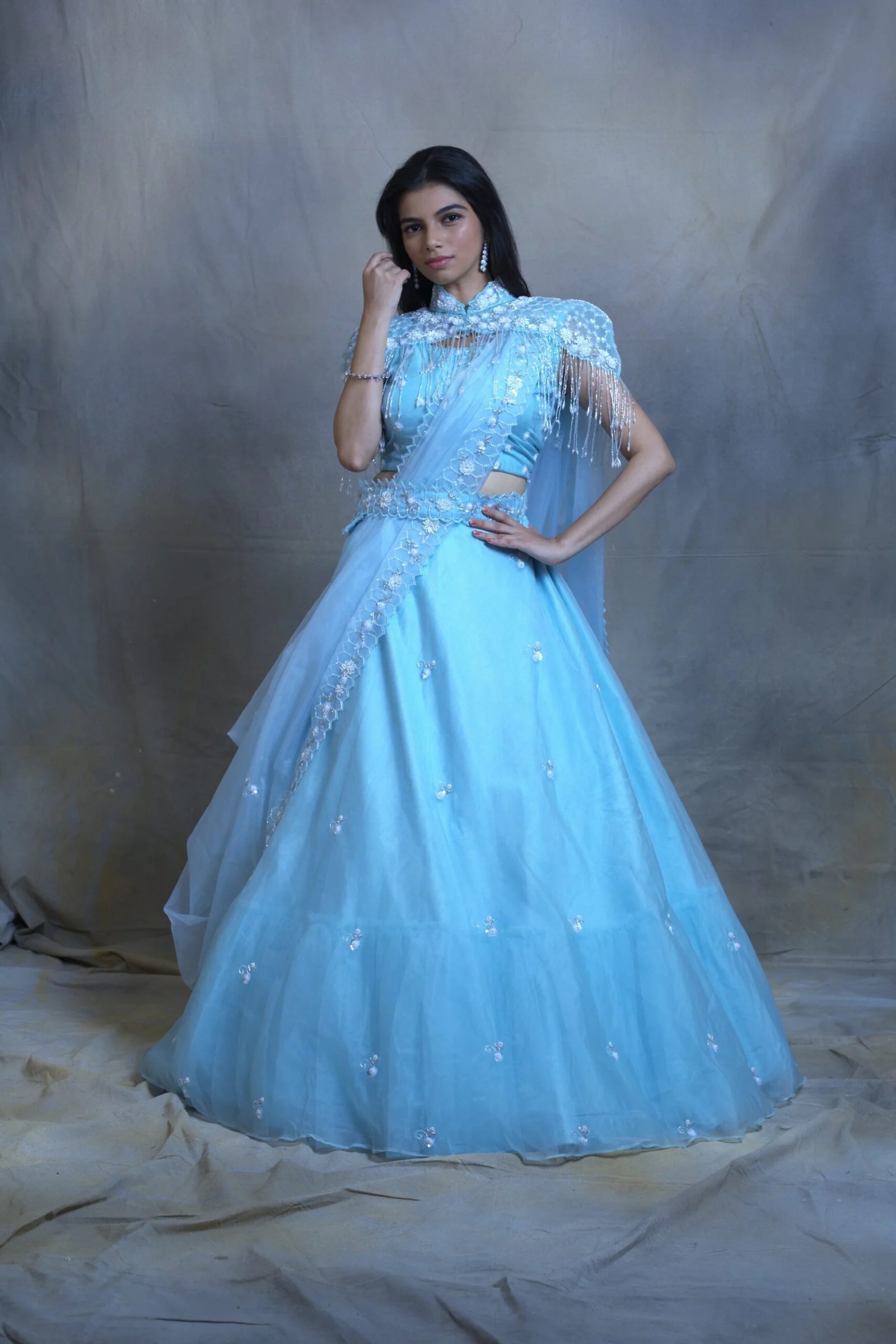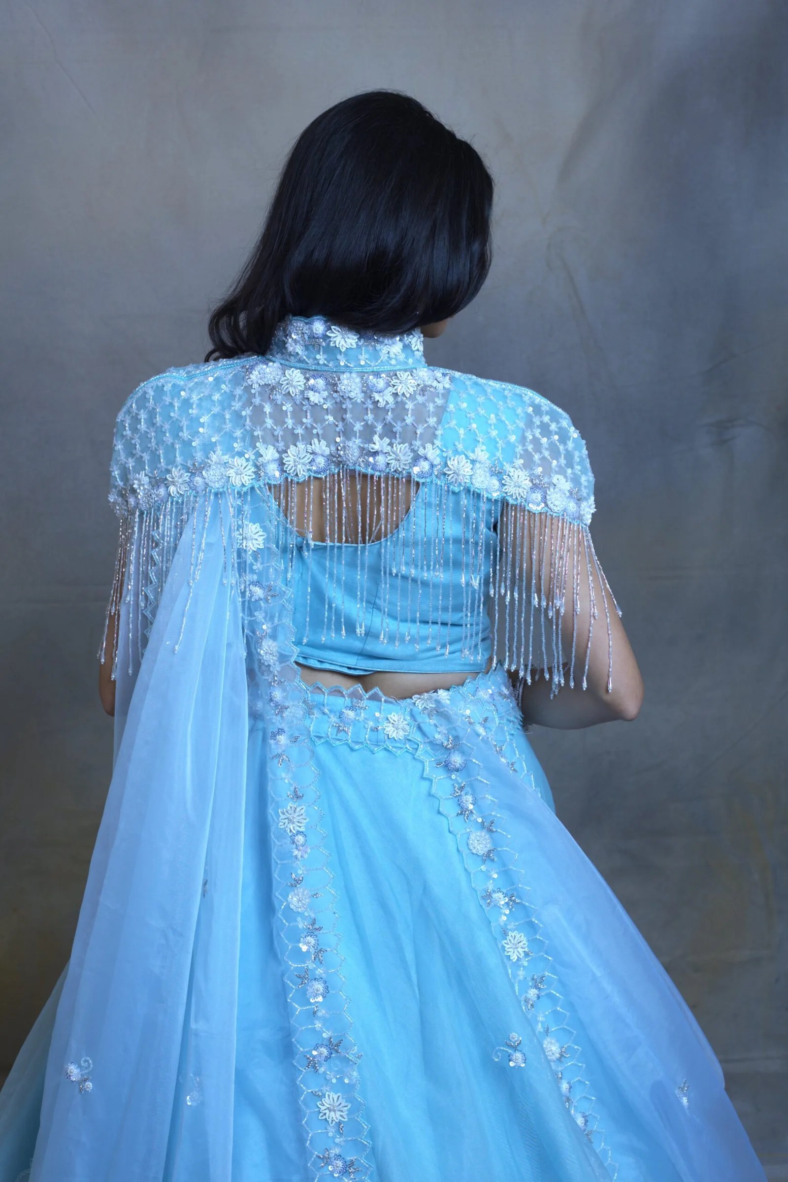 Dreamy Sky Blue Cape Lehenga