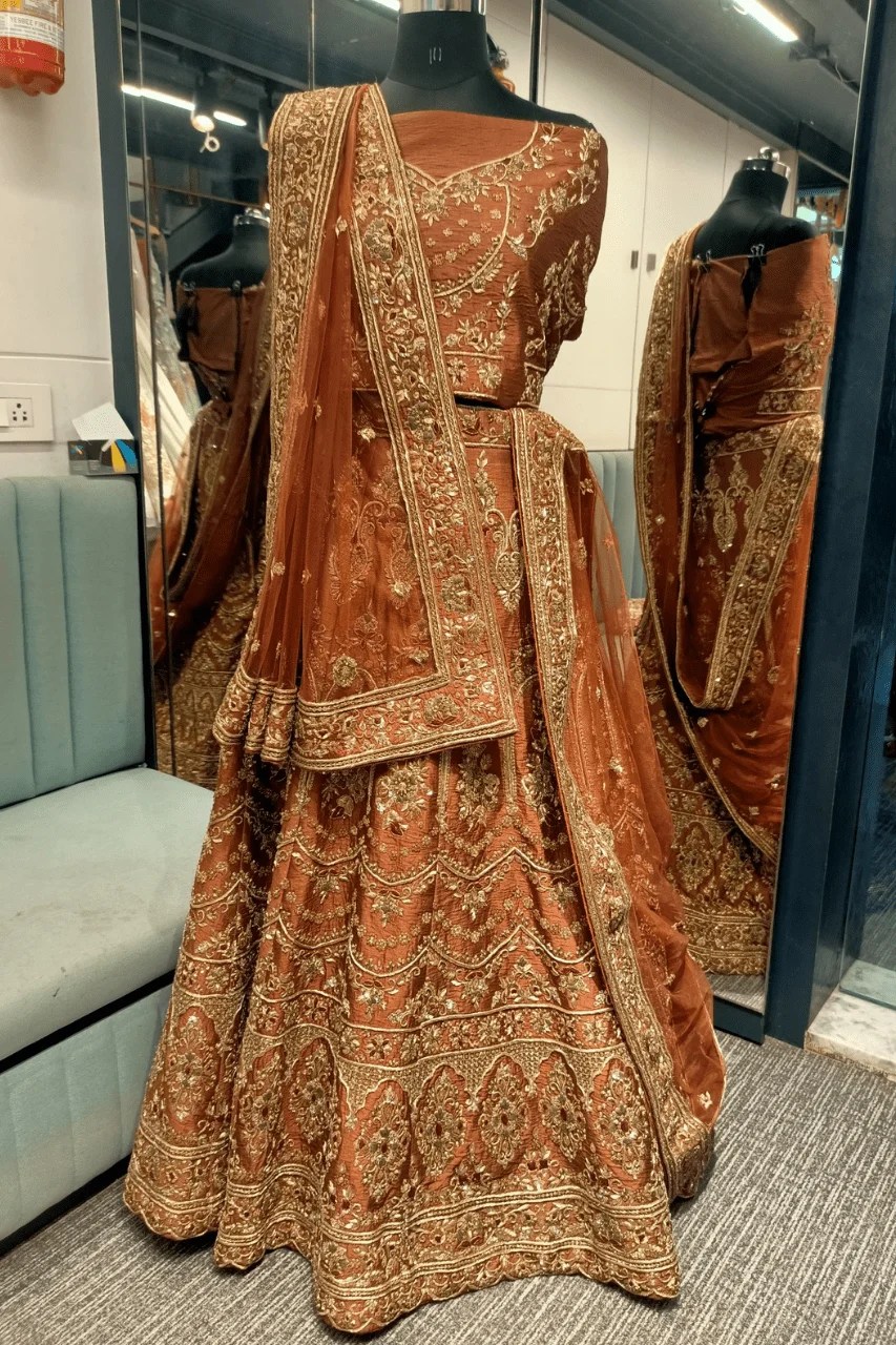 Make a grand statement on your special day with this stunning Bridal Lehenga, a masterpiece of traditional craftsmanship and regal elegance. Meticulously designed for weddings and unforgettable occasions, this lehenga features heavy Zardosi embellishments, showcasing intricate handwork that exudes timeless luxury and opulence.