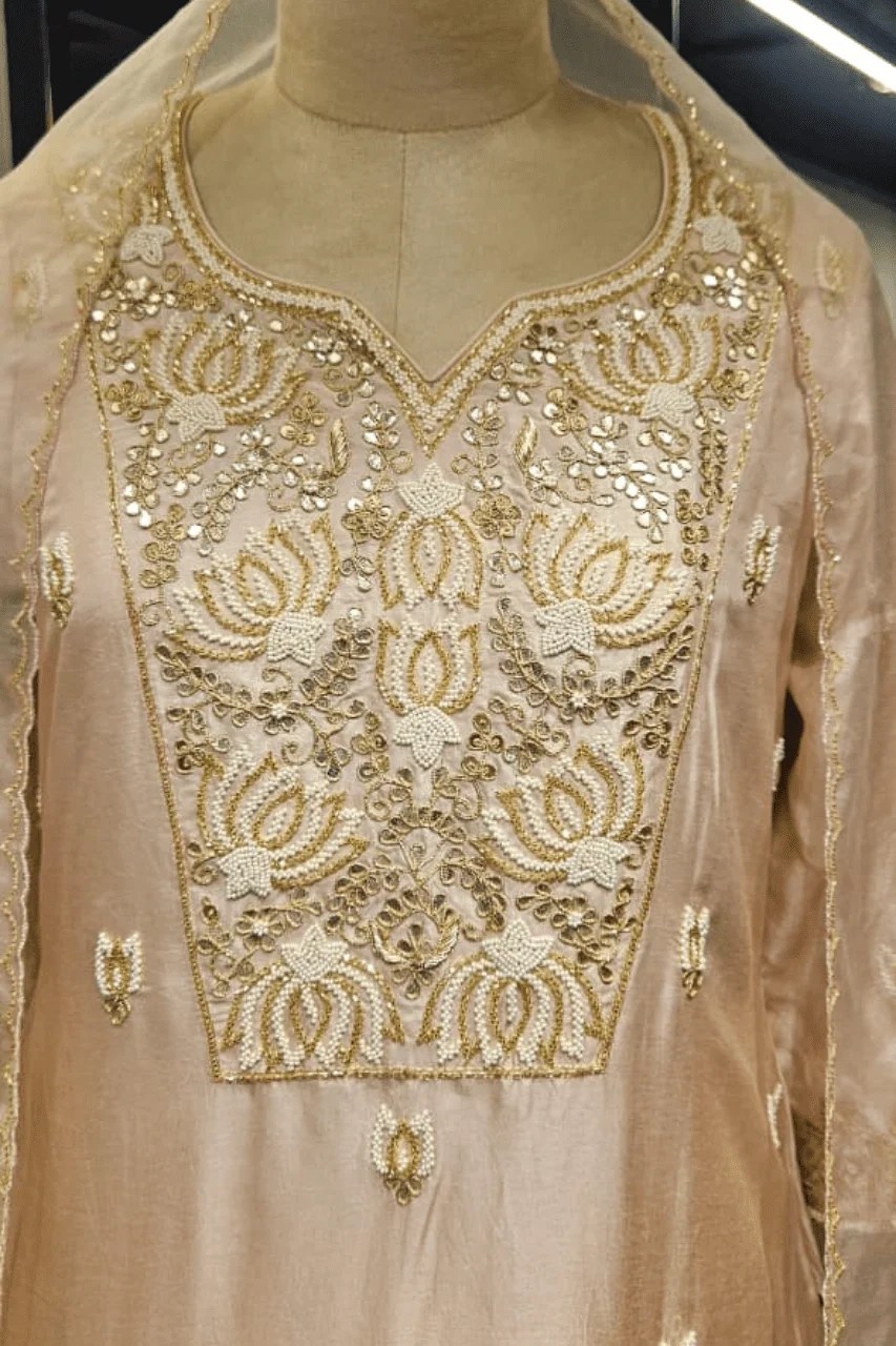 Design: Intricate gotta and Pearl embellishments