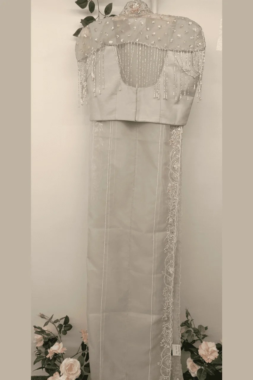 Elevate your elegance with this stunning grey organza saree, adorned with intricate cutdana and Sequence embellishments. Lightweight and graceful, it’s the perfect choice for parties and wedding occasions, adding a touch of sparkle and sophistication to your look.