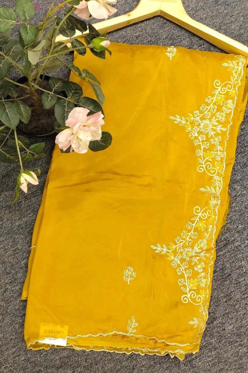Elegant silk organza saree handcrafted with pearl, cutdana, and zardoshi work — a perfect blend of grace and intricate craftsmanship.