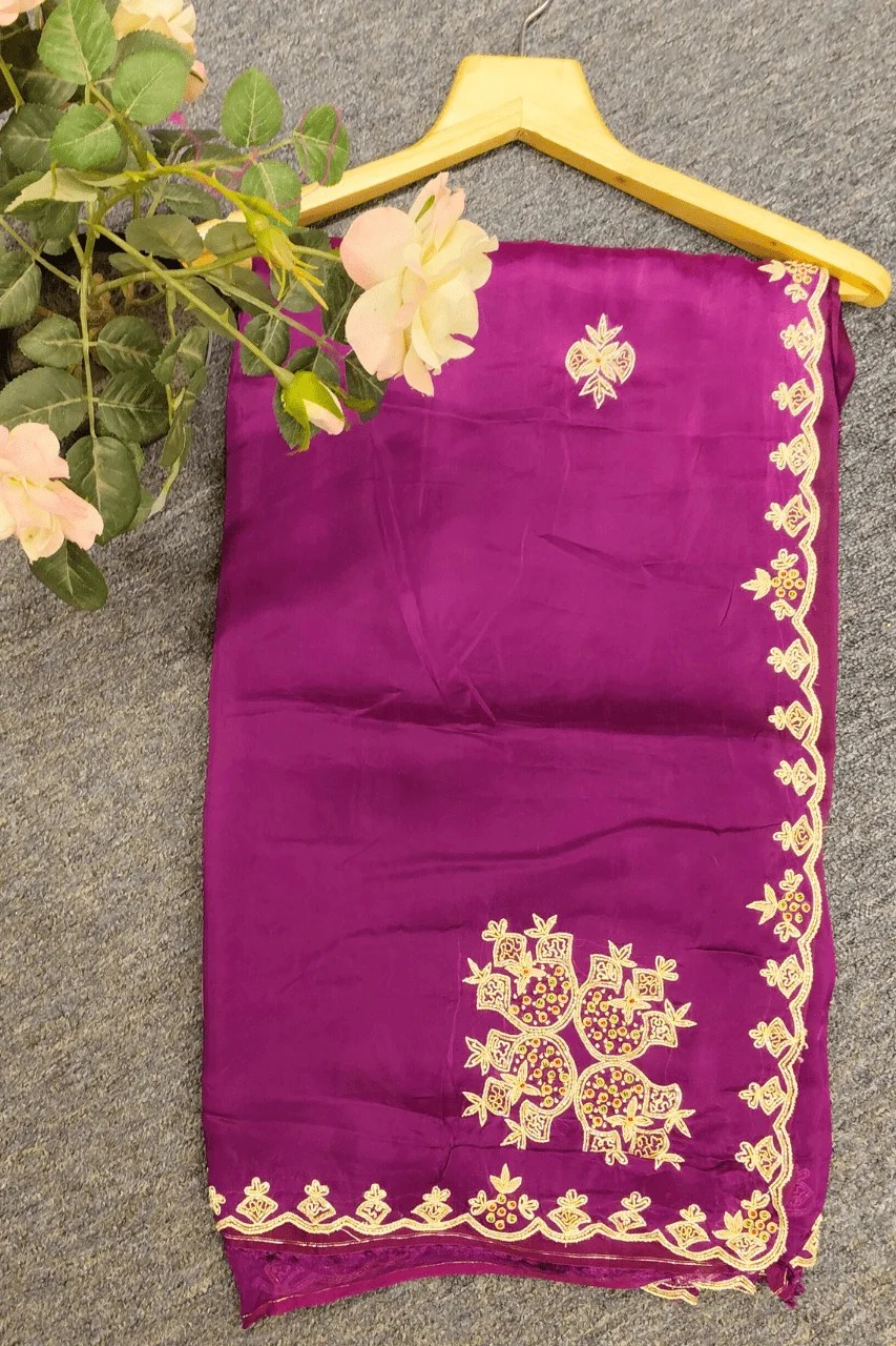 Elegant silk organza saree handcrafted with pearl, cutdana, and zardoshi work — a perfect blend of grace and intricate craftsmanship.