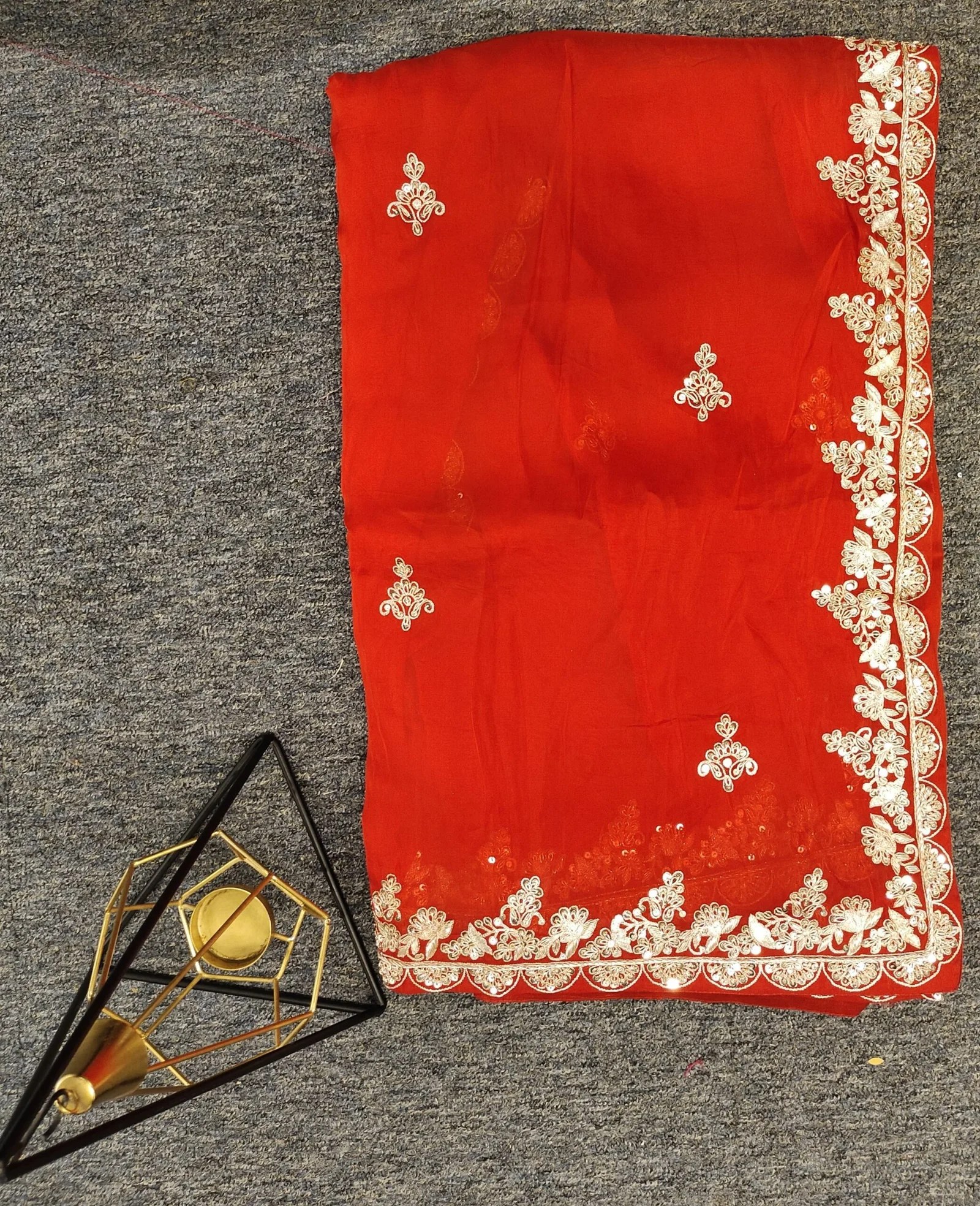 Beautiful Red silk organza saree handwoven with zardodhi and sequins work . Two shades enhances its beauty.