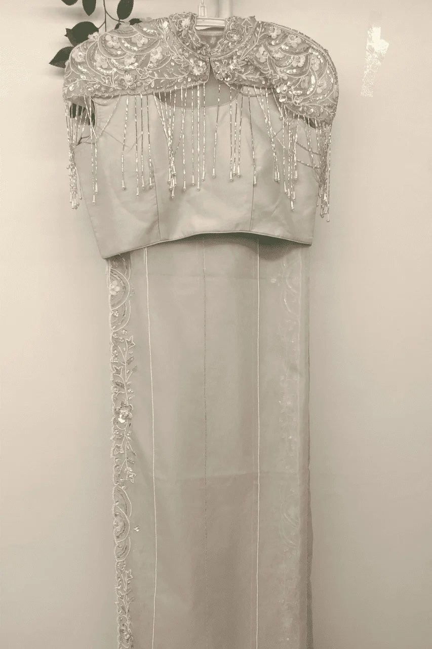 Elevate your elegance with this stunning grey organza saree, adorned with intricate cutdana and Sequence embellishments. Lightweight and graceful, it’s the perfect choice for parties and wedding occasions, adding a touch of sparkle and sophistication to your look.