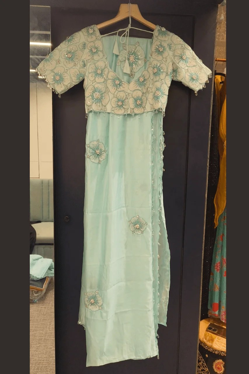 Elevate your elegance with this stunning Sea Green organza saree, adorned with intricate sequence and pearl embellishments on floral motifs. Lightweight and graceful, it’s the perfect choice for parties and wedding occasions, adding a touch of sparkle and sophistication to your look.
