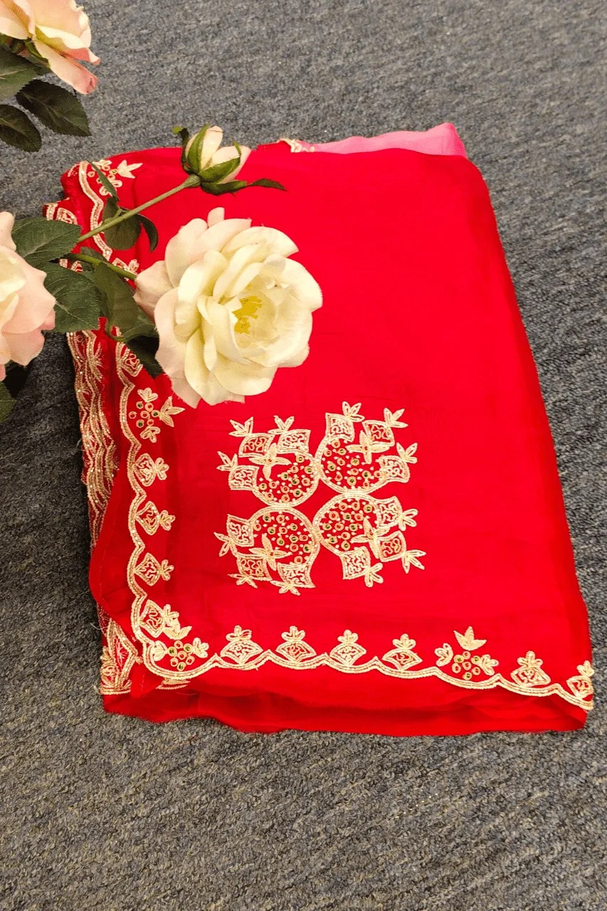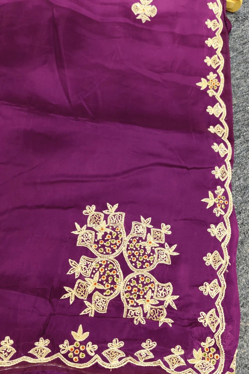 Elegant silk organza saree handcrafted with pearl, cutdana, and zardoshi work — a perfect blend of grace and intricate craftsmanship.